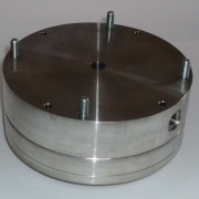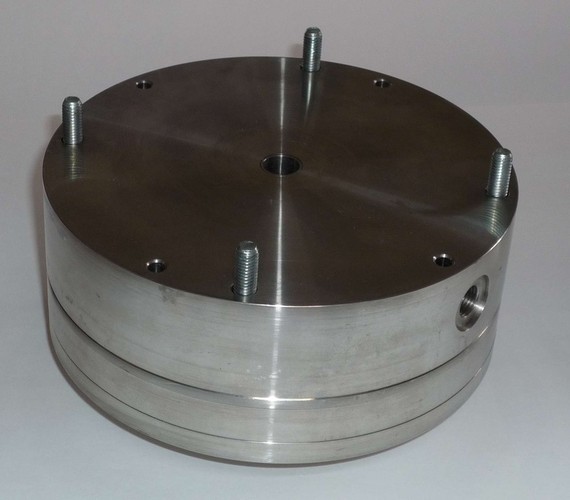 Bild a: Düsen-Einheit. Im Zentrum der Ringspalt, am Rand die Argon-Gaszuführung.